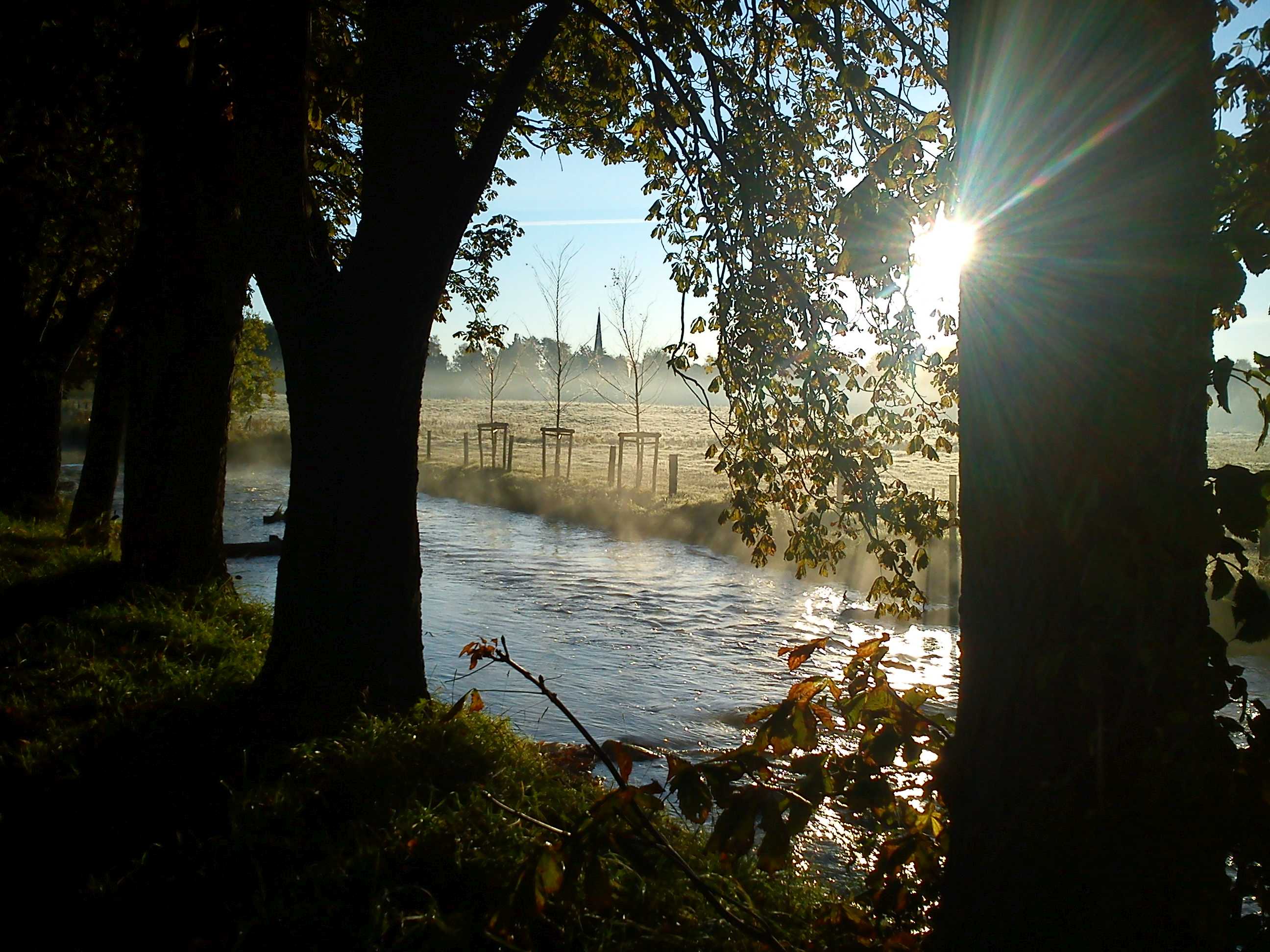 Hier geht die Sonne auf. Morgennebel verschleiern ein wenig die Landschaft. Aber es wird hell. Und die klaren Spiegelungen der Bäume im Wasser zeigen, was möglich ist. Ich kann auch auf dem Kopf stehen, die Dinge aus einer ganz anderen Perspektive betrachten. Ändern werde ich sie dadurch nicht. Aber möglicherweise mein Verhältnis zu ihnen. Und das ist manchmal so viel Wert. Vieles kann dann nämlich leichter werden, weil ich nicht nur in eine Richtung denke, sondern in mehrere. Und deshalb neue Lösungen finde, mit denen ich den Herausforderungen besser begegnen kann.